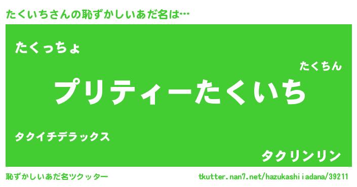 | 意味不明あだ名 | 『ペロリンたくいち』『永久保存たくいち』 |