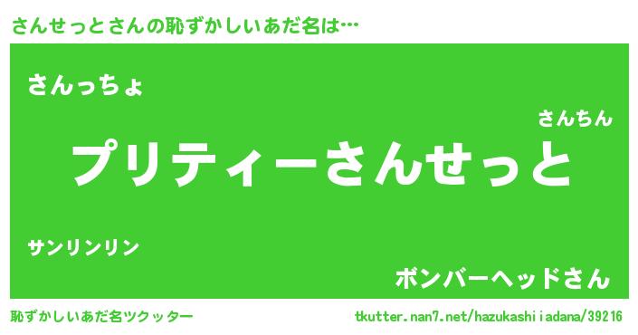 | 胡散臭い通販商品みたいなあだ名 | 『億万長者になれるブレスレット…その名も「さんせっと」』 |