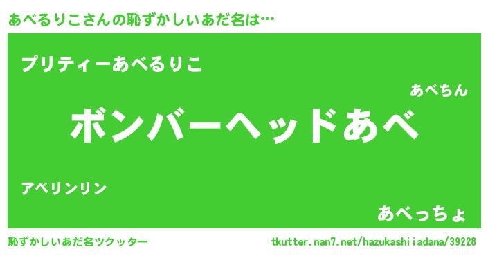 | ヒーロー風カッコイイあだ名 | 『仮面アベダー』『正義の使者あべるりこ』 |