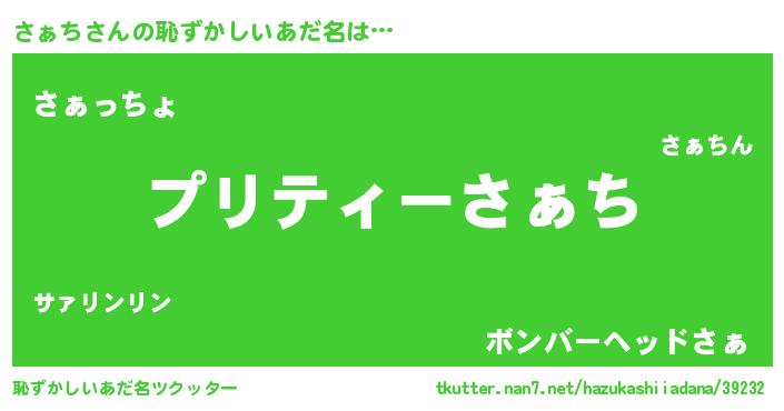 | 意味不明あだ名 | 『ペロリンさぁち』『エリンギ科さぁち属』 |