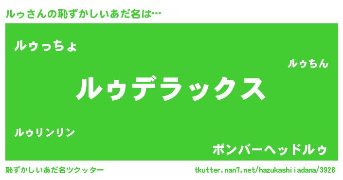 | ポケモン風あだ名 | 『ルゥゴンZ』『ルーゥイ』『ルゥダネ』 |
