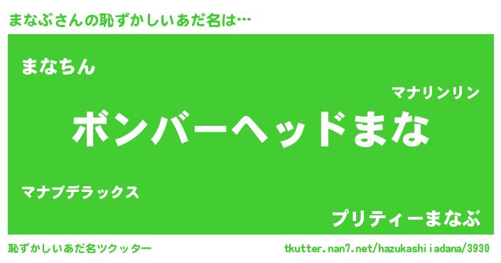 | ヘコむあだ名 | 『まなぶ(笑)』『まなにー』『豆乳』 |