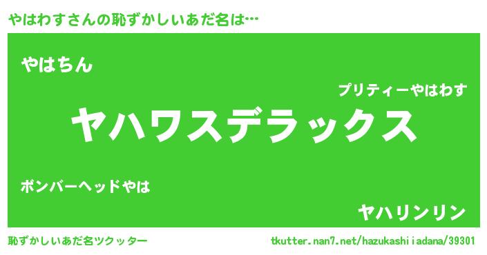 | ヘコむあだ名 | 『やはわす(震え声)』『やはっぺ』 |