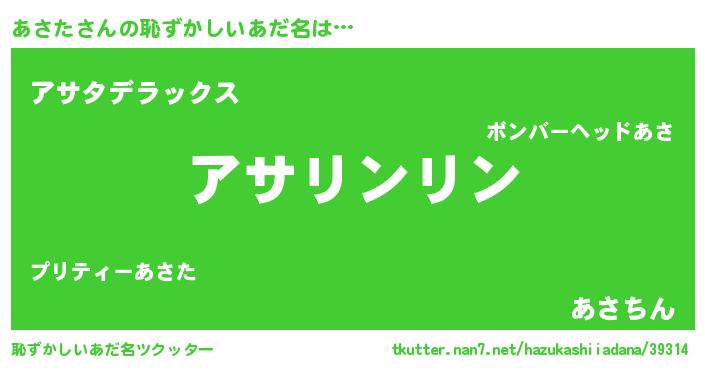 | 男性向けラノベタイトル風あだ名 | 『ダンジョンにあさたを求めるのは間違っているだろうか』 |