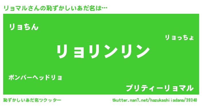 | ヘコむあだ名 | 『リョぷりん』『リョマル(笑)』 |