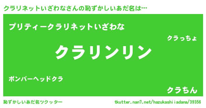 | 女子向けラノベタイトル風あだ名 | 『シンデレラクラリネットいざわな家の靴箱館』 |