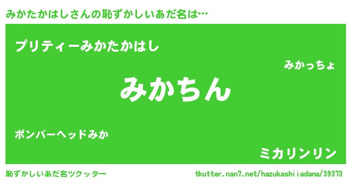 | ヘコむあだ名 | 『みかたかはし(小並感)』『みかにゅー』 |