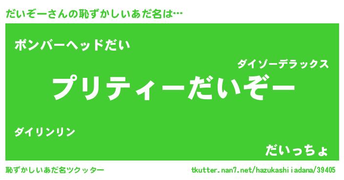 | 胡散臭い通販商品みたいなあだ名 | 『億万長者になれる霊験あらたかなお札…その名も「だいぞー」』 |