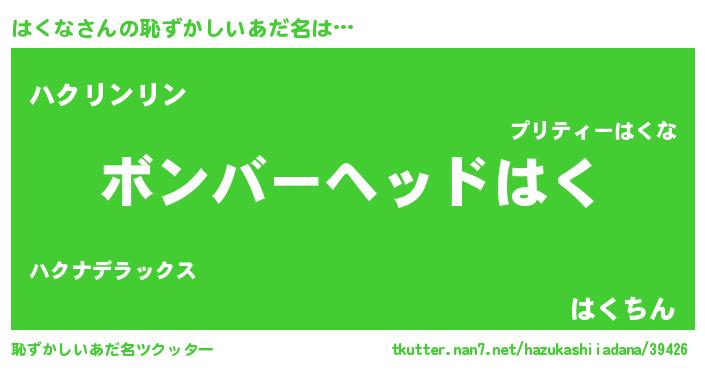 | ヘコむあだ名 | 『はくぷりん』『はくな(震え声)』 |