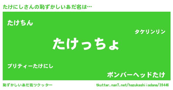 | 意味不明あだ名 | 『たけにしフォーエバー』 |