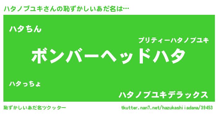 | 男性向けラノベタイトル風あだ名 | 『ハタノブユキに滅ぼされるだけの簡単なお仕事です』 |