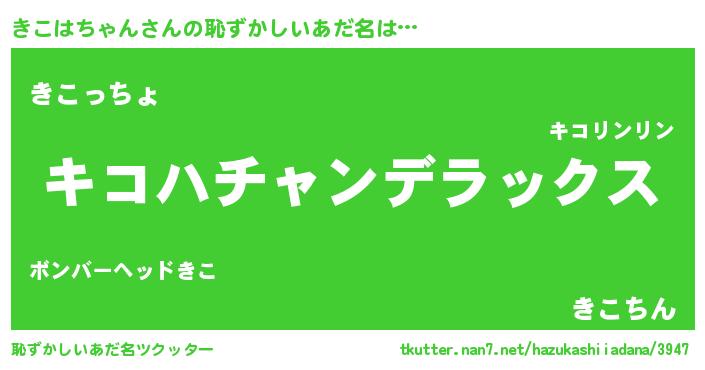 | ヒーロー風カッコイイあだ名 | 『サイバー戦士キコハチャン』 |
