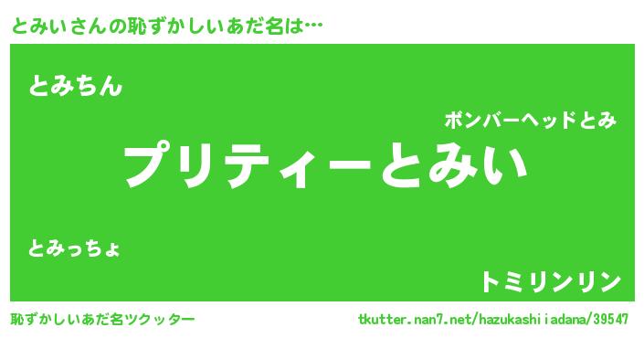 | 意味不明あだ名 | 『ペロリンとみい』『永久保存とみい』 |