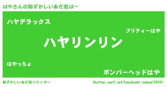| 意味不明あだ名 | 『とにかく怪しいはや』『自称はや』 |