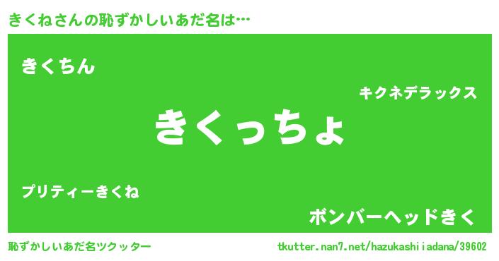 | ヘコむあだ名 | 『つくし』『きくね(笑)』『きくっぺ』 |