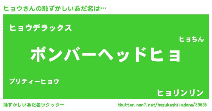 | ヒーロー風カッコイイあだ名 | 『正義の使者ヒョウ』『炎刃騎士ヒョ』 |