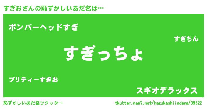 | 男性向けラノベタイトル風あだ名 | 『スギオスレイヤー』『魔弾の王とすぎお』 |