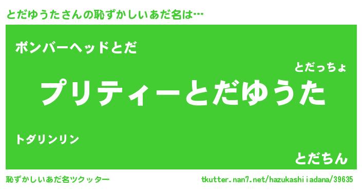| 意味不明あだ名 | 『住所不定無職とだゆうた(77歳)』 |