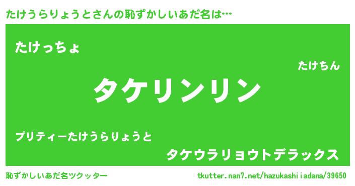 | ポケモン風あだ名 | 『ヒタケウラリョウト』『タケウダネ』 |