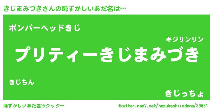 | 男性向けラノベタイトル風あだ名 | 『キジマミヅキスレイヤー』 |