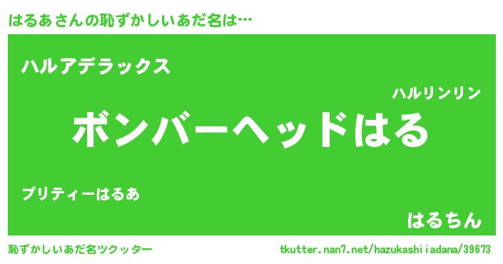 | ヒーロー風カッコイイあだ名 | 『愛の使者はるあ』『超時空戦士ハルア』 |