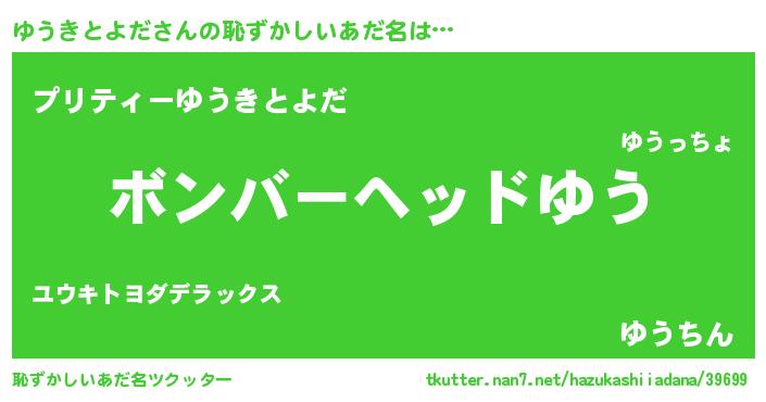 | ヒーロー風カッコイイあだ名 | 『慈愛の使者ゆうきとよだ』 |