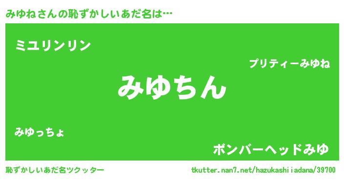 | 男性向けラノベタイトル風あだ名 | 『みゆねという概念が存在しない退屈な世界 』 |