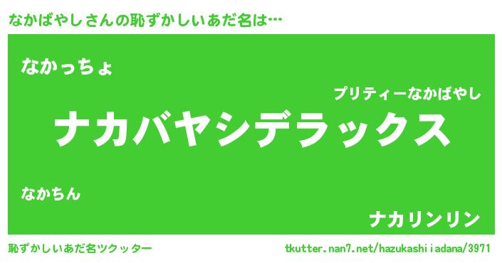 | ヒーロー風カッコイイあだ名 | 『最強戦士ナカバヤシ』『黄金騎士ナカ』 |