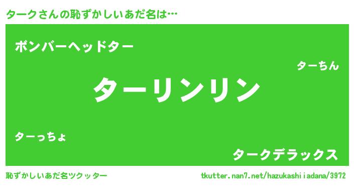 | ヒーロー風カッコイイあだ名 | 『銀牙騎士ター』『愛の使者ターク』 |