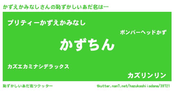 | ヘコむあだ名 | 『かずえかみなし(震え声)』『かずっふぃ~』 |