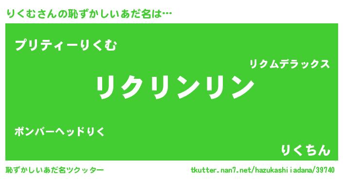 | 男性向けラノベタイトル風あだ名 | 『この素晴らしい世界にりくむを!』 |