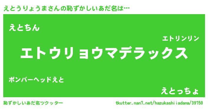 | 伝説のあだ名 | 『聞きしに勝る勇者えとうりょうま』 |