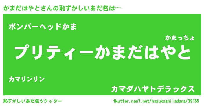 | ヒーロー風カッコイイあだ名 | 『スーパーカマダハヤト』『仮面カマダー』 |
