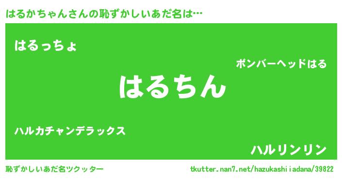 | ヘコむあだ名 | 『はるかちゃん(笑)』『なまこ酢』 |
