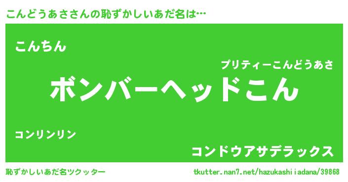 | 男性向けラノベタイトル風あだ名 | 『ノーゲーム・ノーコンドウアサ』 |