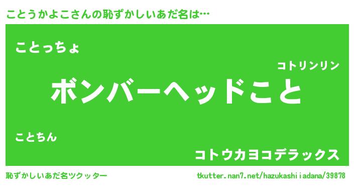 | ヘコむあだ名 | 『豆乳』『ことっ子』『ことっふぃ~』 |
