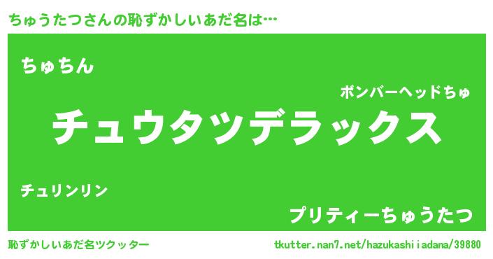 | 男性向けラノベタイトル風あだ名 | 『転生したらちゅうたつだった件』 |
