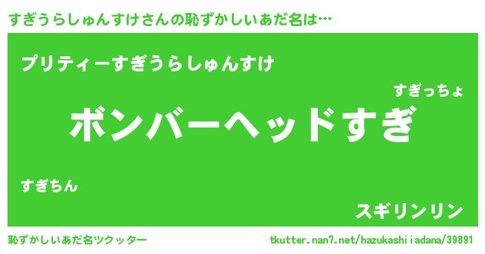 | ヒーロー風カッコイイあだ名 | 『正義の使者すぎうらしゅんすけ』 |