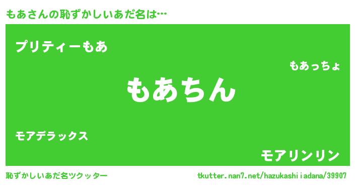 | ヘコむあだ名 | 『もあ(爆)』『もあにゅー』『牛乳』 |