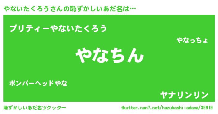 | 男性向けラノベタイトル風あだ名 | 『やないたくろうという概念が存在しない退屈な世界 』 |