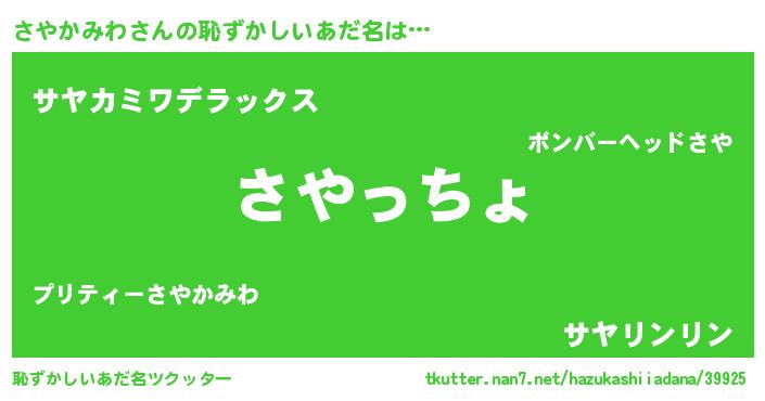 | ファンタジー風あだ名 | 『エターナルサヤカミワー』『ゼサヤトゥ』 |
