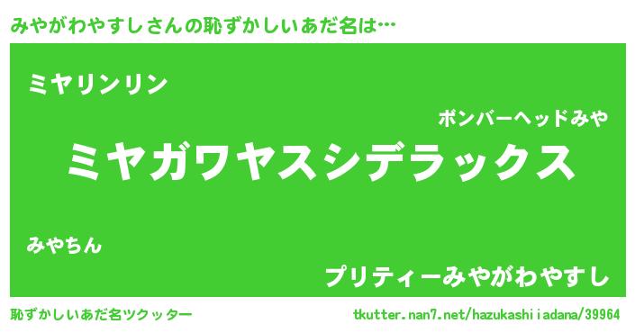 | ポケモン風あだ名 | 『ミヤセウス』『ヒミヤガワヤスシ』 |