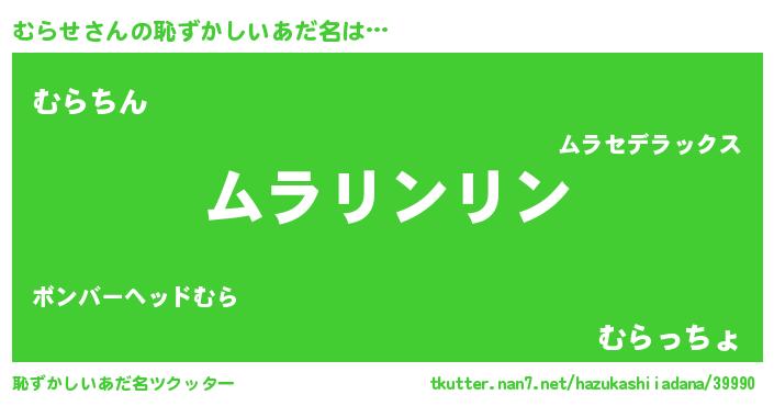 | 意味不明あだ名 | 『とにかく怪しいむらせ』『自称むらせ』 |