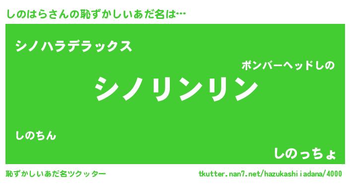 | 意味不明あだ名 | 『とにかく怪しいしのはら』 |