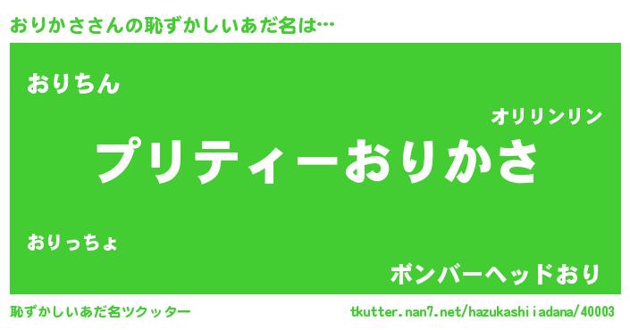 | 欧米人風あだ名 | 『マイケルおりかさ』『ダニエルおりかさ』 |