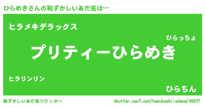 | ヘコむあだ名 | 『ひらもー』『ひらめき(笑)』 |