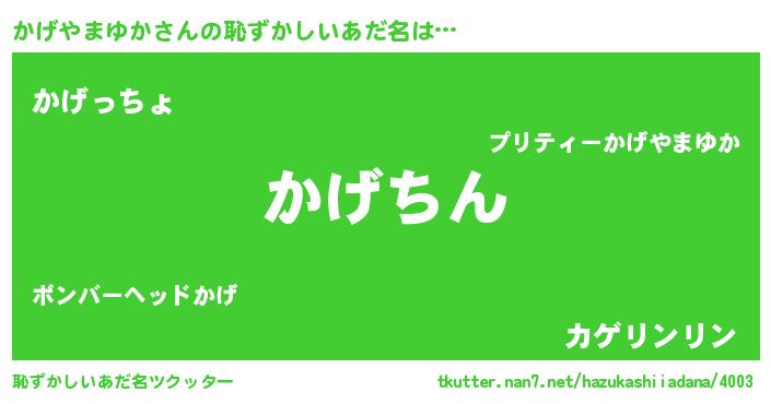 | 意味不明あだ名 | 『永久保存かげやまゆか』 |