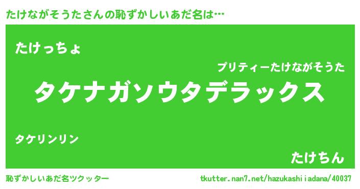 | ヘコむあだ名 | 『豆乳』『たけながそうた(笑)』 |