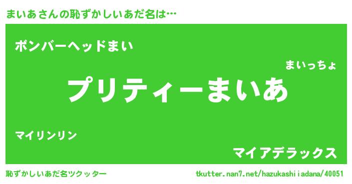 | 胡散臭い通販商品みたいなあだ名 | 『モテモテ間違いなし水晶球…その名も「まいあ」』 |