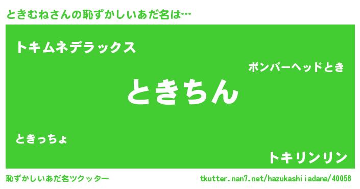 | 意味不明あだ名 | 『住所不定無職ときむね(95歳)』 |